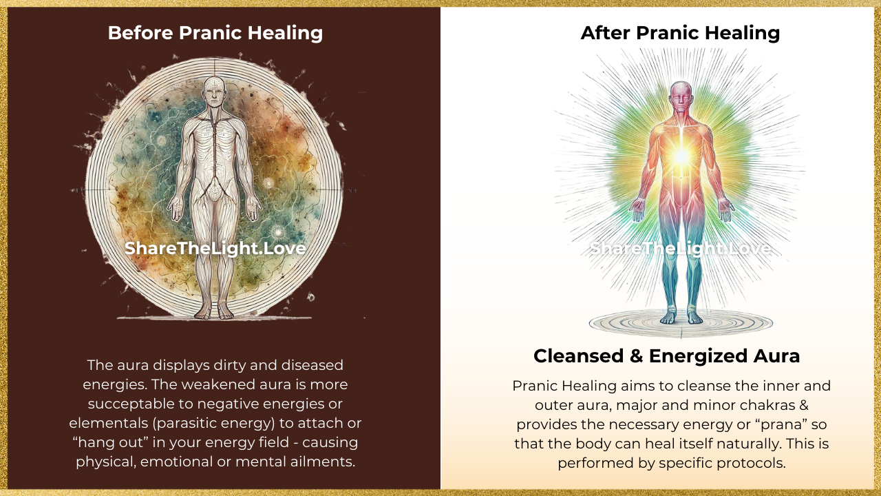 Pranic Healing gently clears away dirty and negative energies that keep you stuck in stress, pain, or emotional imbalance. Through cleansing and restoring your energy field with guided breathing, visualization, and chakra balancing, your body and mind return to a state of harmony. Clients often leave feeling lighter, pain-free, and deeply peaceful — as if a heavy weight has been lifted. Each session is soothing, meditative, and designed to awaken your body’s natural ability to heal.