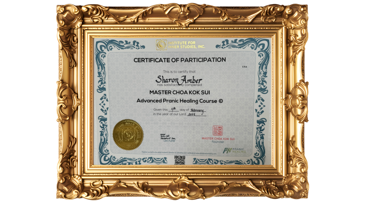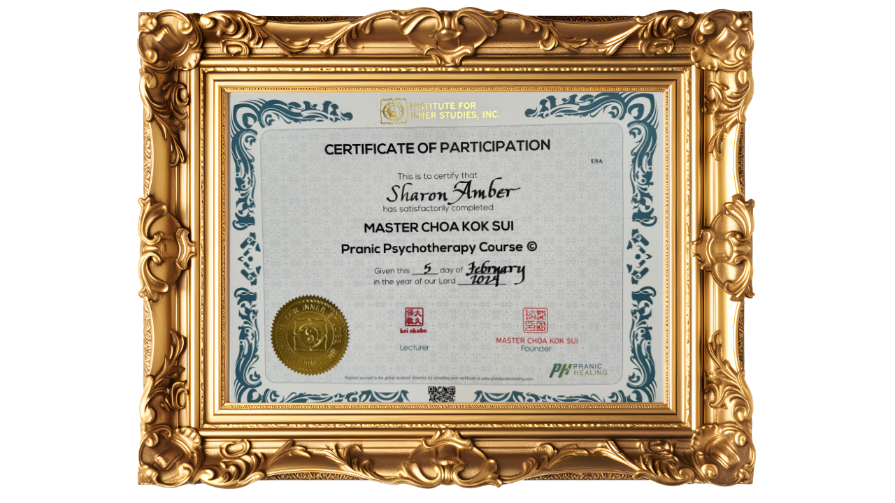 I’ve also trained in Advanced Pranic Healing and Pranic Healing Psychotherapy, mastering techniques to safely and effectively address both physical and emotional patterns. I am deeply grateful to GrandMaster Choa Kok Sui for these teachings, which continue to guide my work in helping others return to balance and wholeness.